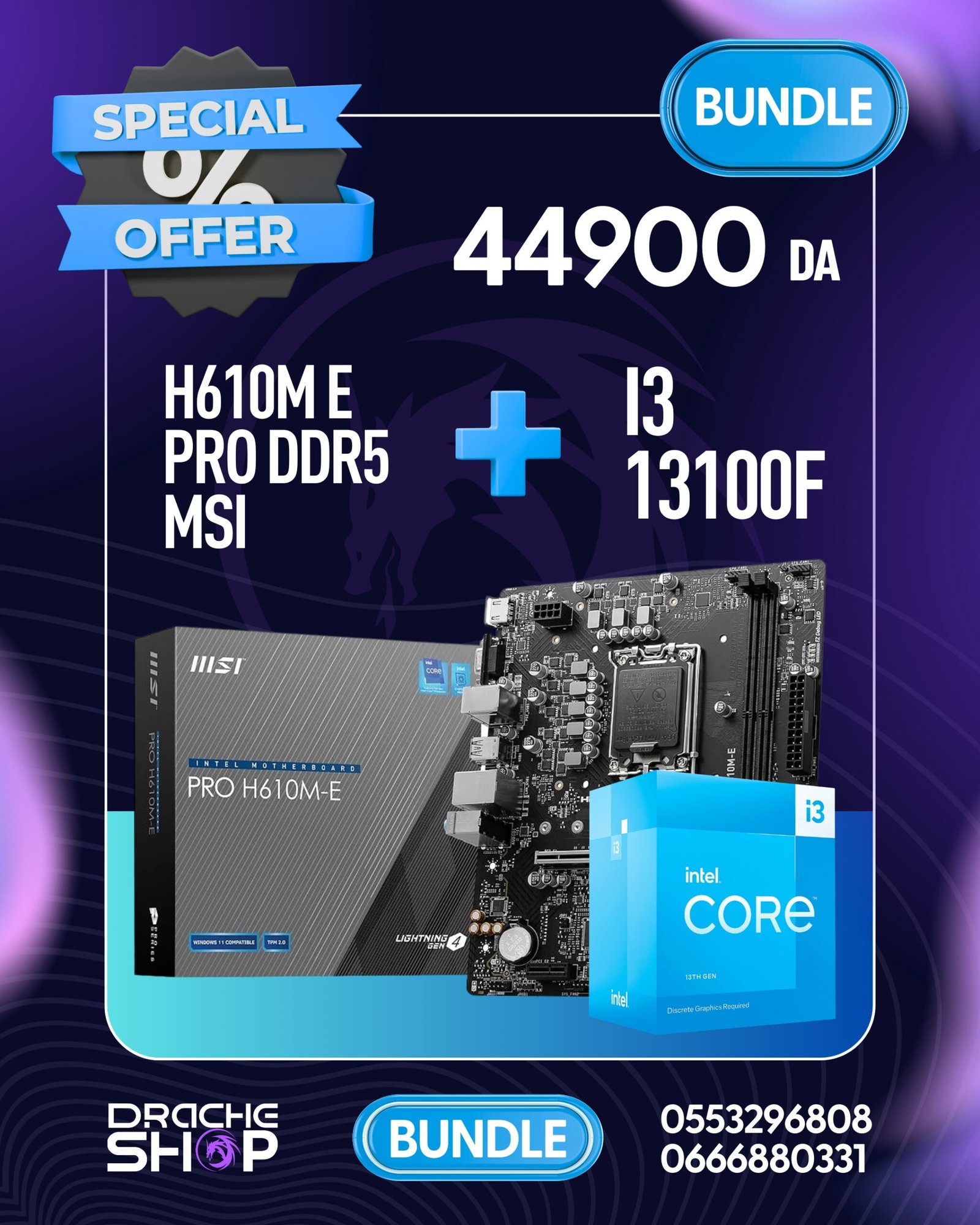 BUNDEL I3 13100F+ H610M E PRO MSI DDR5