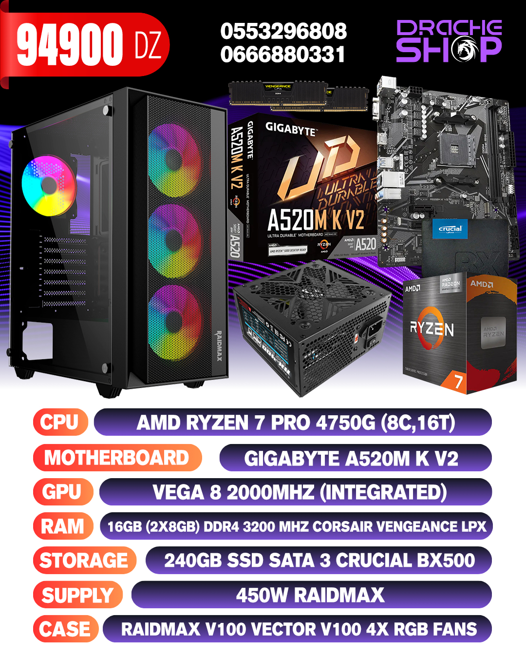 CONFIG AMD RYZEN 7 PRO 4750G+VEGA 8