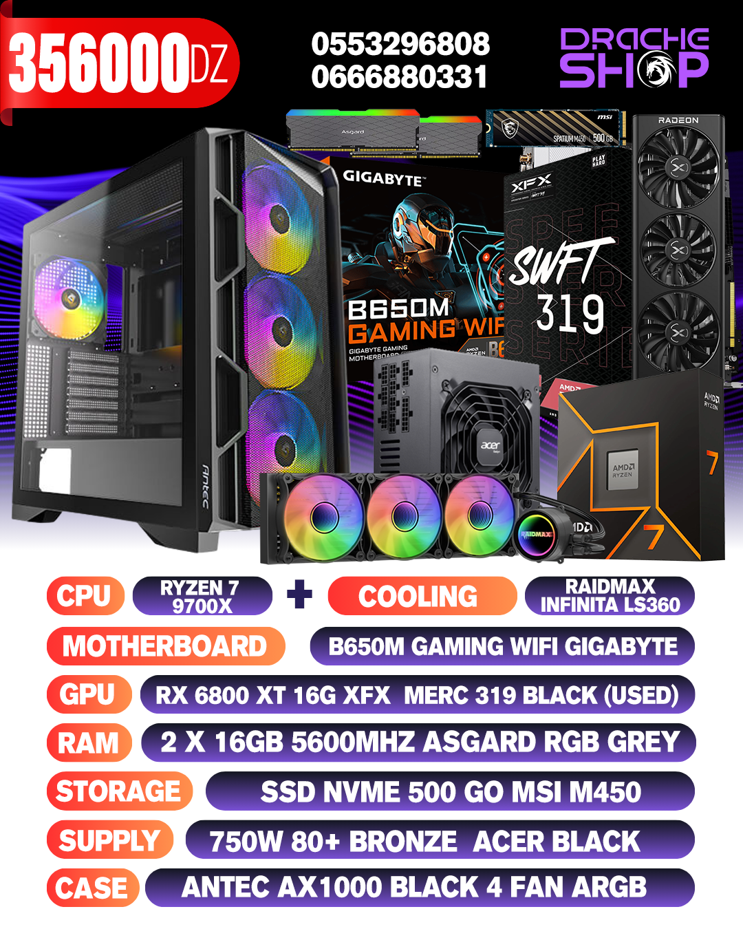 CONFIG Ryzen 7 9700X+RX 6800XT 16 GO (GPU USED)