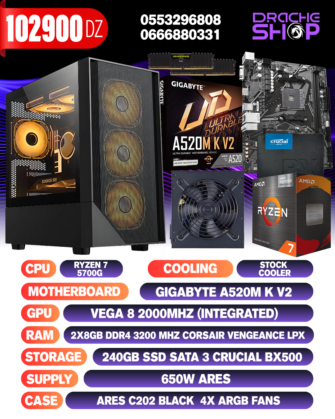 | CPU | AMD RYZEN 7 5700G (8C,16T) |
